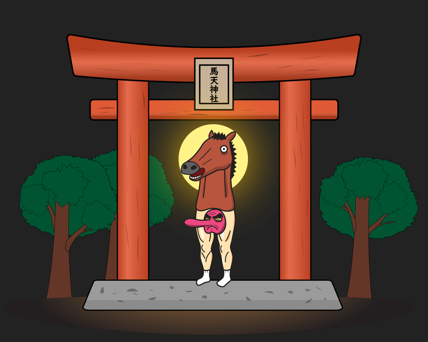 Instead of the body part the man wanted, Tengu granted him the head of a horse, and Tengu himself became the man’s body part!